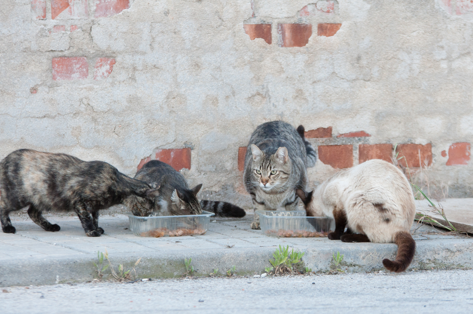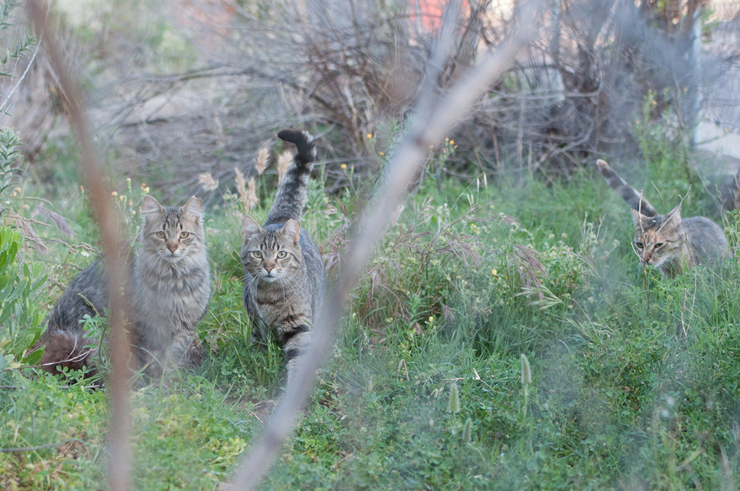 La colonia “Hierbas” es una de las más grandes que cuidamos en la asociación. En la actualidad está formada por unos 35 gatos, entre los que se encuentran, Aloe, Avena, Anís, Chía, Chinoa, Chufa, Coca, Curry, Malva, Melisa, Poleo, Romero, Salvia, Tomillo, y Trigo, entre otros. Los hay de todos los colores, de raza y sin ella, de pelo largo y corto. Es una maravilla verlos a todos juntos, ver lo bien que se llevan entre ellos y cuánto se respetan. De esta colonia han salido algunos gatines con carácter sociable que se han entregado en adopción, pero los demás se mantienen aquí, en su hogar, en libertad, cuidando de ellos desde la asociación lo mejor que podemos.