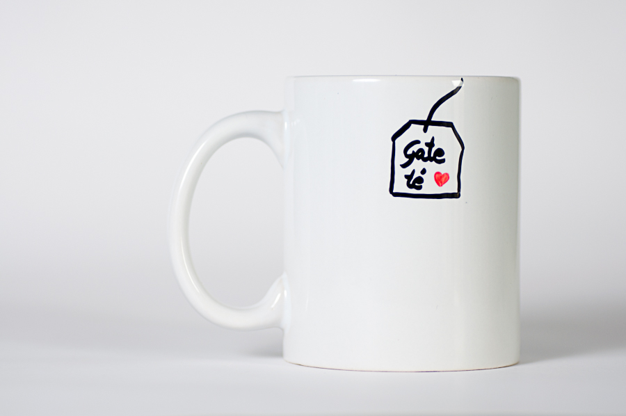 Tazas pintadas a mano (y con cariño). Se pueden lavar en lavavajillas a 50º, colocándolas de manera que los dibujos no se rocen con otras piezas.